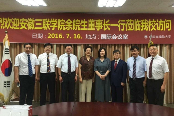 2016年7月15日-20日,受金会庆校长的委托,学校领导余皖生、鲁先长、秦永元、曹艳平、王瑞友、金哲等一行代表安徽三联学院赴韩国忠北大学、济州大学、拿撒勒大学进行为期一周的考察和交流。