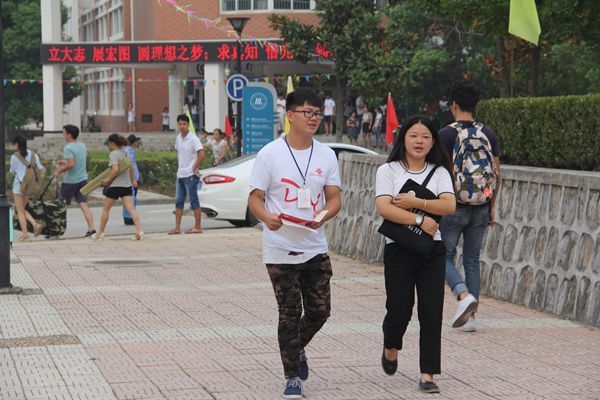 9月10日,我校迎新首日。校园之内随处可见鲜红的欢迎条幅,人性化的指示彩旗引人注目,而面带微笑、热情服务的志愿者与工作人员使整个学校充满了家的温暖。