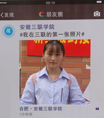 王燕 来自经济管理学院的王燕下了校车就被学姐带到新生接待处,“我要在这里留下我在三联的第一张照片,很有意义。希望我能结交到新的朋友,努力学习,争取拿到奖学金。”