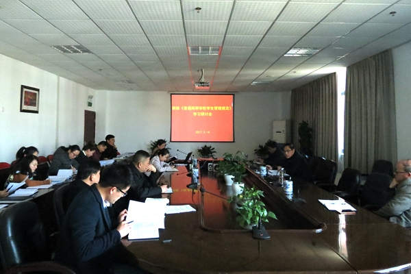 为进一步推进我校学生管理工作制度化、规范化建设,3月14日下午,我校在图书馆T518会议室召开了新版《普通高等学校学生管理规定》学习研讨会。会议由副校长王瑞友主持。党办、教务处、保卫处、校团委、就业创业处等部门负责人、各二级学院学管副院长及学生处相关人员参加了会议。