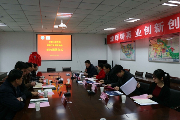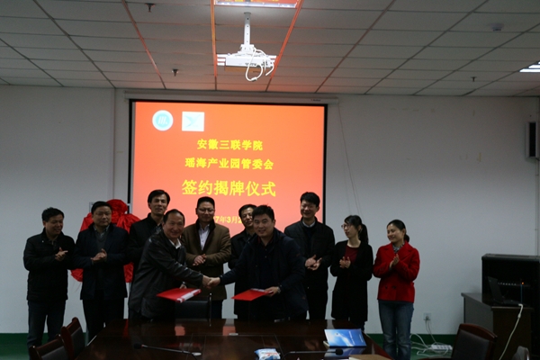 为搭建校区交流合作平台,推动教育服务地方经济和社会发展,2017年3月23日,合肥市瑶海产业园管委会与安徽三联学院校区合作签约挂牌仪式在瑶海区都市科技园会议室隆重举行,瑶海区管委会甄大勇副主任等领导和我校机械工程学院、计算机工程学院、电子电气工程学院、就业创业处相关领导出席签约仪式。