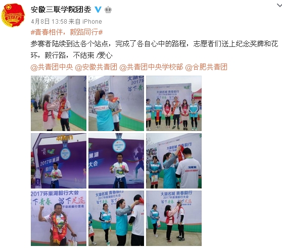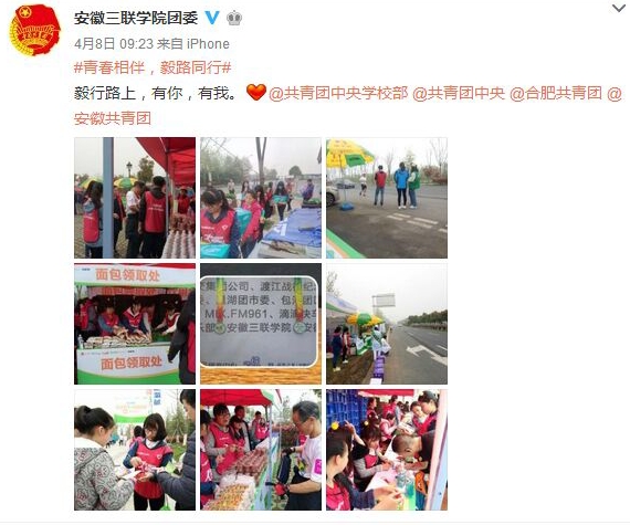 这是一场万众瞩目的盛事,这是一次无关终点的旅程。三联青年齐心助力毅行志愿服务的同时,全面宣传“只留一行足迹,不留一片垃圾”的文明毅行理念,争做文明人,弘扬正能量,以实际行动积极践行“公益三联 大爱江淮”的校园文化精神,受到社会各界的一致好评。(撰稿、摄影:校团委 编辑:王卉)