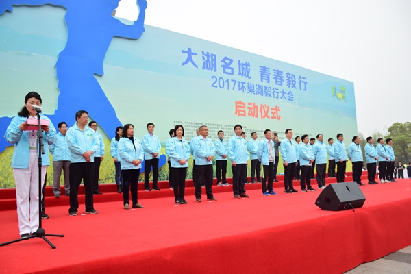 4月8日上午,由中共合肥市委宣传部、共青团合肥市委员会、合肥市旅游局、合肥市体育局联合主办的“大湖名城·青春毅行”2017环巢湖毅行大会在渡江战役纪念馆南广场正式开幕。我校副校长王瑞友受邀代表学校出席开幕式。