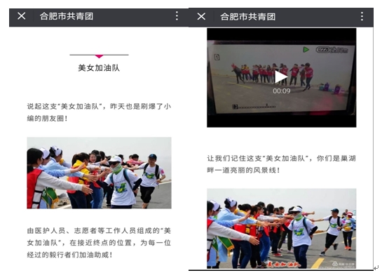 特别值得一提的是,11号站点出现了一群最具活力的“美女加油队”,她们为经过的每一位毅行者呐喊助威,成为本次毅行途中的一道亮丽的风景线,合肥团市委专题报道本团队。