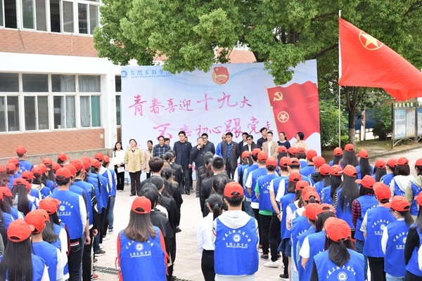 为纪念五四爱国运动98周年、中国共产主义青年团成立95周年,我校于五四青年节当日隆重举行“青春喜迎十九大·不忘初心跟党走”主题教育活动启动仪式。校党委书记李明阳与全体党委委员以及各二级学院党、团总支书记和两百余名青年团员参加本次启动仪式,仪式由校团委书记李燕主持。