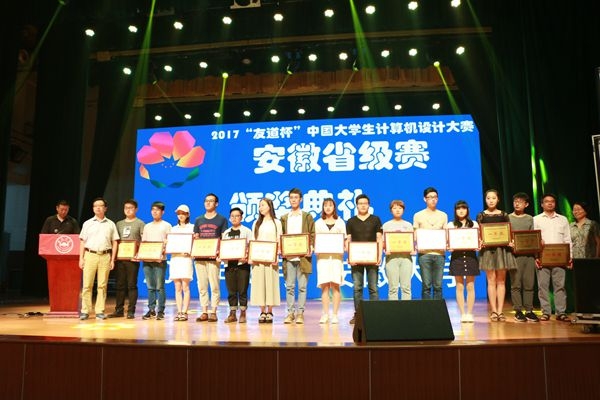 6月4日,2017年(第10届)中国大学生计算机设计大赛安徽省级赛颁奖典礼在安徽大学举行。此次大赛我校共有13件作品参赛,来自艺术学院数字媒体技术和动画专业的学生在指导教师孙义、杨亮、陶宗华的带领下共获得省赛一等奖一项、二等奖两项、三等奖两项、优胜奖三项的好成绩。