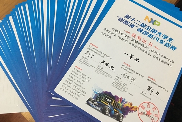 7月17日到20日,第十二届全国大学生“恩智浦”杯智能汽车竞赛安徽赛区暨安徽省第十届大学生“讯飞”杯智能汽车竞赛在安徽信息工程学院举行,此次比赛省内共计48所高校319支队伍参赛,我院学子表现突出,有3支代表队荣获安徽省一等奖,1支代表队荣获二等奖,4支代表队荣获三等奖,2支代表队获得优秀奖。