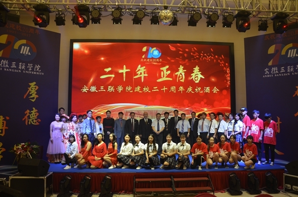 金风送爽,华灯初放,乐曲悠扬,9月23日晚上,安徽三联学院隆重举行建校20周年庆祝酒会。来自海内外的宾朋、来自五湖四海的校友欢聚一堂,回忆昨日、展望未来,共同祝愿三联学院20周年华诞。