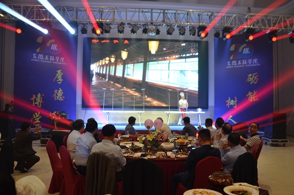 酒会在安徽三联学院校歌中拉开帷幕。兄弟高校代表、安徽新华集团创始人、安徽新华集团董事长吴俊保先生以及国外高校代表、日本西九州大学田中丰治教授先后上台致辞,表达了对安徽三联学院最诚挚的祝贺。