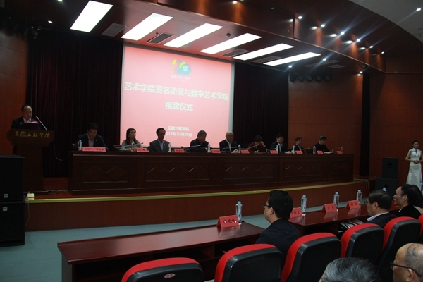 艺术学院执行院长孙义汇报了动漫与数字艺术学院筹建情况。校党委副书记鲁先长宣读了“艺术学院更名动漫与数字艺术学院学院”的文件。
