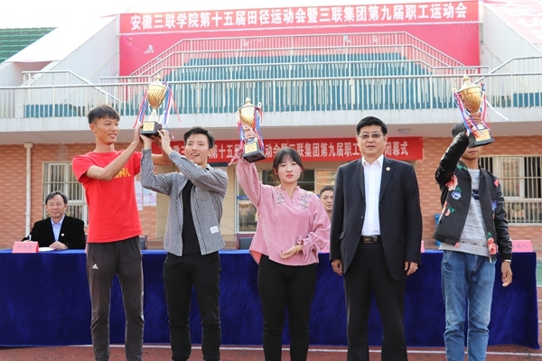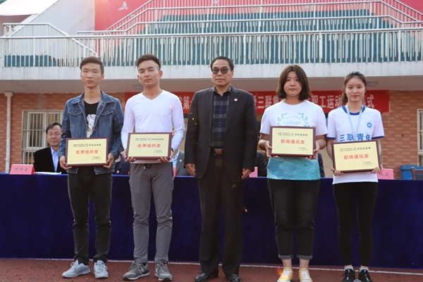 此外,机械工程学院、机器人工程学院获得体育道德风尚奖,优秀组织奖由电子电气工程学院、计算机工程学院获得,经济管理学院、外语学院、财会学院分别荣获入场式创意奖,最佳通讯奖由安徽三联学院新闻媒体中心、大学生记者团获得,校学生会、安徽三联学院青年志愿者服务中心荣获最佳志愿者组织奖。(撰稿:大学生记者团 程雨 摄影:陈玉泽 大学生记者团 李方杰 彭军亮 编辑:王卉)
