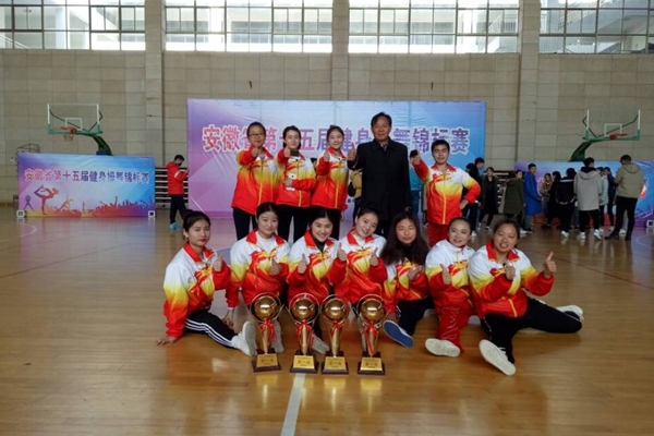 11月26日,由安徽省健美操协会主办,安庆师范大学承办的第十五届健身操舞锦标赛,在安庆师范大学(龙山校区)圆满落幕。我校参赛队员赛前积极准备,刻苦训练,在比赛中摘金夺银,喜获佳绩。
