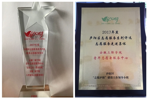 在第55个学雷锋纪念日到来之际,校团委申报的“青春之火·燃动你我”安徽三联学院大型赛事志愿服务项目获评2017年度庐阳区优秀志愿服务项目,校青年志愿服务中心获评志愿服务先进集体。与此同时,我校开展了“弘扬志愿精神,做新时代雷锋”的学雷锋志愿服务月系列活动,在实际行动中培育和践行社会主义核心价值观。