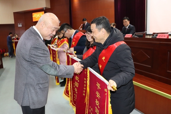 大会在庄严的国歌、校歌声中拉开帷幕。副校长姜发根、秦永元、王瑞友分别宣读了表彰文件。大会共表彰2017年度先进集体、先进个人,年度招生先进集体、先进个人,扁平化管理优秀单位,年度优秀辅导员,年度创建“平安校园”先进集体、先进个人,年度就业工作先进集体、先进个人,年度新闻宣传工作先进集体、先进个人,年度先进团总支以及社会实践工作先进集体、社会实践“优秀指导教师”等,金会庆校长向受表彰单位及个人颁发荣誉证书。先进个人代表经济管理学院副院长王力、先进集体代表总务处处长王家平分别上台发言。