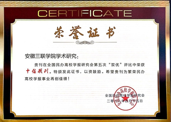 大会公布了研究会第五次学报和编辑学论文评优结果,我校主办的《安徽三联学院学术研究》获评为全国民办高校学报“十佳期刊”。