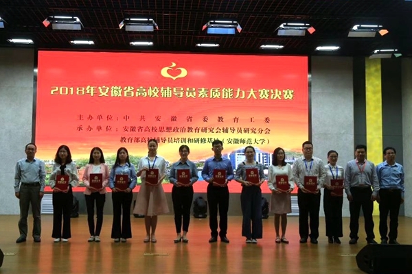 5月12-13日,2018年安徽省高校辅导员素质能力大赛决赛在教育部高校辅导员培训和研修基地(安徽师范大学)成功举办。在各区域复赛赛区选拔的基础上遴选30名选手晋级参加此次决赛,其中合肥赛区12人,皖南赛区10人,皖北赛区8人。