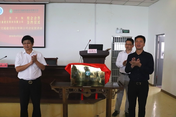 随后,交通工程学院执行院长凤鹏飞和安徽交建副总裁吴学懿签订了校企双方合作协议,校党委副书记鲁先长和安徽交建副总裁吴学懿为“人才培养基地”揭牌。
