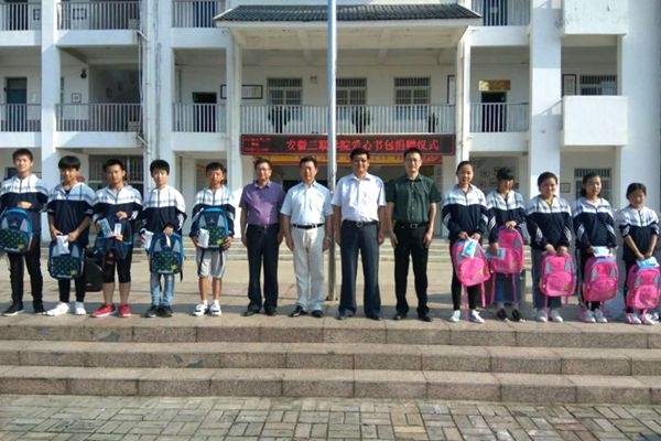 6月11日,受金会庆校长委托,校党委副书记鲁先长、校长助理方劲松、综合办公室主任占海文等一行赴肥西县梁岗中学、含山县姚庙初级中学、含山县铜闸中学开展“同圆中国梦,守护安全行”安全书包捐赠活动。三所学校分别举行了简朴而热烈的捐赠仪式,为500名中学生发放了安全防护书包、安全图书及急救包等。