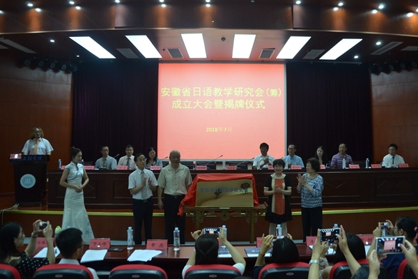 在欢快的音乐声中,安徽三联学院金会庆校长、安徽外国语学院张胜芳副校长、安徽大学外语学院唐千友院长助理和安徽三联学院外语学院奚欣华副院长共同为安徽省日语教学研究会揭牌。揭牌仪式后,在图书馆四楼会议室举行安徽省日语教学研究会(筹)第一届领导机构选举会议。安徽省日语教学研究会领导机构选举会由安徽大学外语学院唐千友院长助理主持,会上宣读了对机构设置、选举办法等文件,并经过民主选举成立了教学研究会领导机构,由安徽三联学院副校长金哲担任会长,安徽大学外语学院院长助理唐千友、安徽外国语学院副校长张胜芳、阜阳师范学院外语学院院长韩秀成、安徽农业大学日语系主任王磊担任副会长。