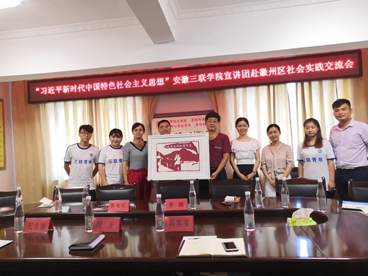 为深入学习宣传贯彻习近平新时代中国特色社会主义思想和党的十九大精神,引领广大青年学生在社会实践中受教育、长才干、做贡献。8月1日,我校暑期“三下乡”社会实践国家级专项团队——“习近平新时代中国特色社会主义思想”安徽三联学院宣讲团,赴黄山市徽州区开展暑期“三下乡”社会实践活动。