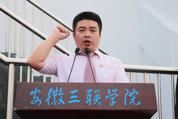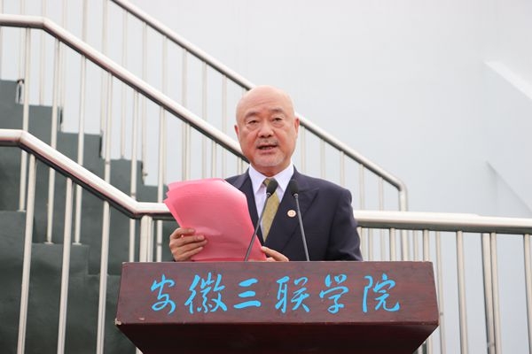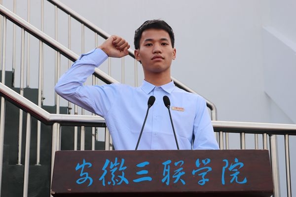 安徽三联学院学生会副主席李超带领全体新生宣誓;机械工程学院执行院长吴明明代表全体教师进行宣誓。