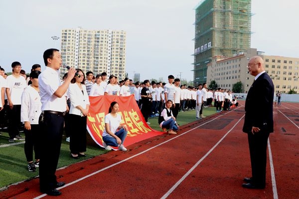 典礼最后,金会庆校长发表重要讲话。金校长首先欢迎5000余名2018级新生的到来,向在新生入学教育、军训工作中付出辛勤汗水和努力的老师、教官们表示感谢。金校长说,新生入学教育和军训是同学们进入大学上的第一堂课,标志着同学们的生活有了一个新的起点,在实现自己理想的道路上迈出了关键的一步,也为开启美好大学学习、生活奠定了良好的基础。金校长指出,同学们选择了三联,既是一种缘分,又是一份信任,三联一定不辜负学生和家长的期望,努力把同学们培养成才。2018级新生的到来为三联教育注入了新鲜的血液,也为三联教育事业的快速发展增添了新的活力。为帮助同学们更好地适应大学生活与学习,金校长对同学们提出三点希望和要求:一是要志存高远,希望同学们做一个有理想、有抱负、有学识、有社会责任感的人;二是要勤学善思,希望同学们要珍惜时光,勤于学习、善于思考,严格要求自己,在大学中找到自己正确的定位,实现自己的人生价值;三是要积极乐观,希望同学们继承和发扬“勇闯难关、拼搏向前;开拓创新、争创辉煌”的三联精神,以主人翁的积极姿态,尽情挥洒智慧和汗水,发现自我、丰富自我、超越自我,努力学习,报效祖国!