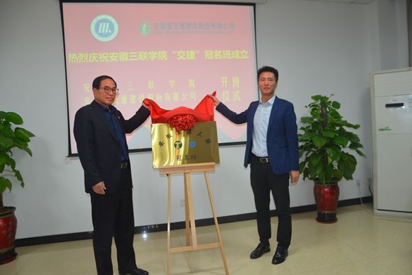 最后,安徽交建副总裁吴学懿、副校长王瑞友、校长助理蔡文芬,分别为冠名班授课教师、企业指导老师颁发聘书,并为“安徽交建冠名班”揭牌。(撰稿:潘立琼 摄影:方小庆 编辑:隋欣)