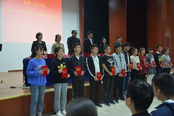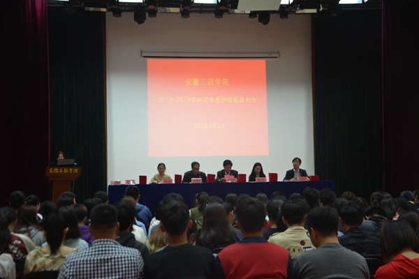 10月24日中午,学校在图书馆多功能报告厅召开了2018-2019学年学生教学信息员大会。校党委副书记鲁先长,副校长王瑞友,教务处、团委、质量管理与评估办公室等相关单位负责人以及全校300多名学生教学信息员参加了会议。会议由校长助理蔡文芬主持。