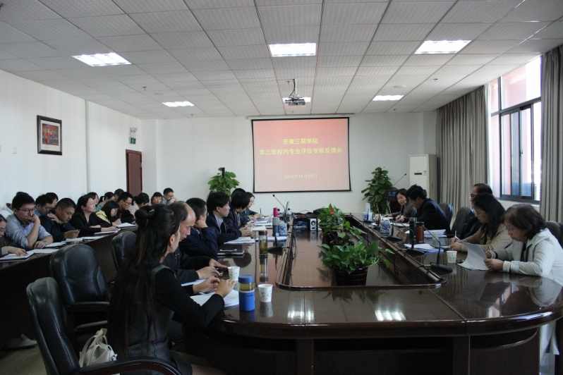 10月29日下午,评估工作专家反馈会在T518召开。校党委副书记鲁先长、副校长张世伟出席会议。各参评学院以及质量评估与管理办公室相关人员参加会议。校长助理蔡文芬主持会议。