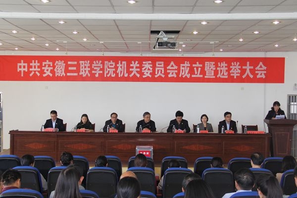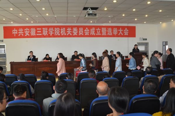 10月29日中午,中共安徽三联学院机关委员会成立暨选举大会在B01报告厅顺利召开。校党委书记李明阳、校党委副书记鲁先长、副校长王瑞友、校长助理蔡文芬、财务总监范兆红,校党委委员李斌、占海文和机关全体党员参加会议。会议由人事处处长兰先兰主持。