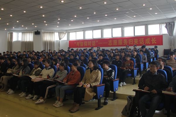 校友胡雪雯以“用志愿微力点燃火热青春”为主讲内容,就参加大学生西部计划和团的十八大代表经历,着重讲述了参与团十八大代表大会期间的行程和所感所想,并从自身参加过的“青春志愿行•温暖回家路”、“社区服务”、“蓝丝带”、“关爱留守儿童”等志愿服务经历,呼吁志愿者保持“奉献、友爱、互助、进步”的志愿服务精神,共青团团员应该牢记“坚定不移跟党走”的初心和“为党和人民不懈奋斗”的使命,做新时代的奋斗者。