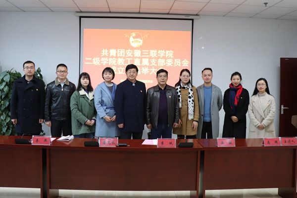 12月6日,安徽三联学院机关直属团支部和二级学院教工直属团支部成立暨选举大会分别于中午12时30分和下午16时在图书馆T412顺利召开。校党委副书记鲁先长,校党委委员、党办主任李斌,校团委书记李燕等出席会议,机关直属团支部及二级学院教工直属团支部全体团员参加了会议。会议分别由团支部召集人陈东东、高瑞主持。