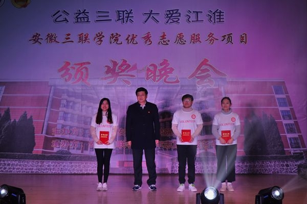 为庆祝“12•5”国际志愿者日,表彰省级青年志愿服务项目大赛获奖的项目,近日,我校“公益三联•大爱江淮”优秀志愿服务项目颁奖晚会在大学生活动中心成功举办。晚会由校团委主办,校青年志愿者服务中心承办,校党委副书记鲁先长出席活动并为一等奖项目颁奖。党办、学生处、校团委负责人,分党委(党总支)书记、团总支(直属团支部)书记及志愿者代表共500人观看了颁奖晚会。