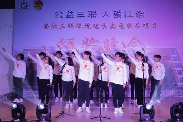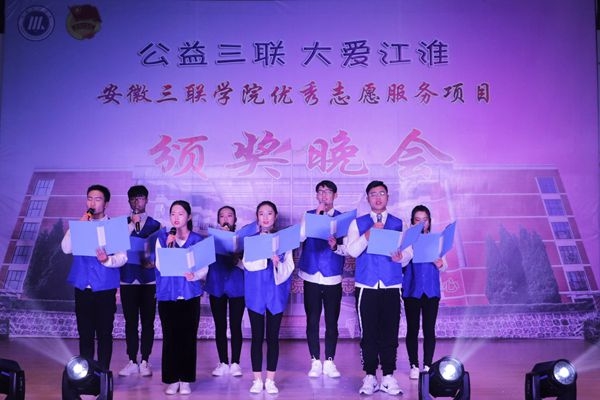 晚会分为三个篇章,分别为我校在安徽省第四届青年志愿服务项目大赛上获奖的14个项目和3个校级优秀组织单位颁奖。