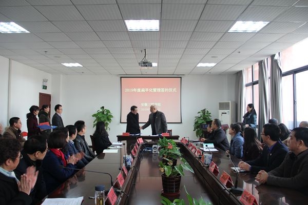 金校长在签约仪式上作了重要讲话,他首先高度肯定了学校10年来推行扁平化管理取得的成绩,以及各二级学院、各部门对学校发展做出的巨大贡献。金校长指出,扁平化管理是学校简政放权的管理模式,其内涵丰富,2019年要进一步深化推进扁平化管理,不断推进学校的快速发展。金校长强调,教学和科研是高校发展的核心任务,一手抓教学,一手抓科研,两手都要抓,两手都得硬,2018年学校科研能力纵向比有了提高,尤其是在联合培养硕士研究生方面有突破,获批省级重点实验室,但同时要增加科研能力的横向对比。最后,金校长要求,学校管理干部不仅要考虑自身的发展,更要做到“为他人搭梯”,抓好团队建设,切实推动学校建设的全速发展。(撰稿:人事处 摄影:王卉 编辑:方小庆)
