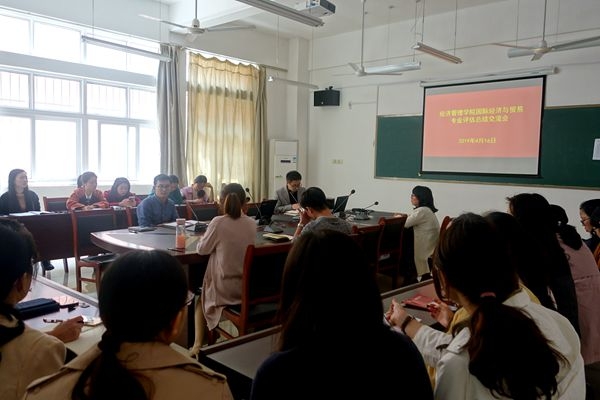 4月16日,经济管理学院在K107会议室举办了国际经济与贸易专业评估总结交流会,该院全体教职员工参加会议。