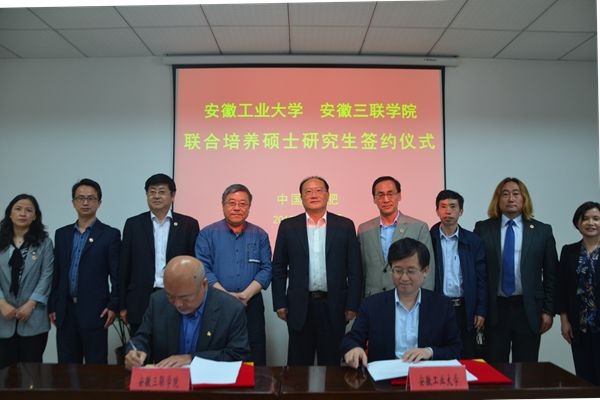 4月19日下午,安徽工业大学与我校联合培养硕士研究生签约仪式在我校图书馆六楼会议室举行。安徽工业大学党委书记刘新跃,党委副书记、校长魏先文和研究生院常务副院长水恒福等莅临我校签约。我校校长金会庆,省教育督导专员、党委书记李明阳,党委副书记鲁先长,副校长张世伟、金哲,校长助理操晓峰、蔡文芬、江秀丽等出席会议。我校相关二级教学单位、科研处、师资处、创新创业学院等单位主要负责人参加会议。会议由副校长张世伟主持。