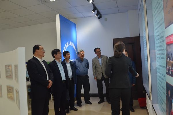 会后,安徽工业大学一行在李明阳等陪同下参观了我校教育部《行动计划》项目承接单位服务机器人应用技术协同创新中心和安徽省非物质文化遗产传习教育基地剪纸艺术研究中心。