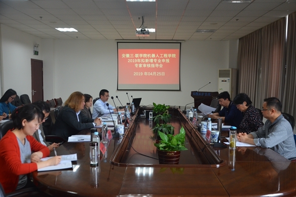 4月25日上午,机器人工程学院在学校图书馆T518会议室举办2019年拟新增人工智能专业申报专家审核指导会议。会议特邀安徽大学张燕平教授、李学俊教授和合肥工业大学郑利平教授到场指导,安徽三联学院副校长金哲、校长助理蔡文芬、机器人工程学院院长李龙澍及机器人工程学院部分骨干教师参加会议。