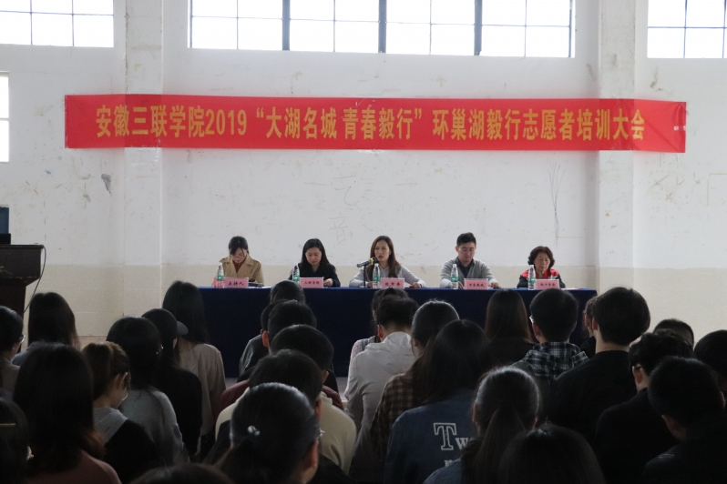 4月26日,“大湖名城•青春毅行”2019环巢湖毅行志愿者专题培训大会在我校大学生活动中心顺利举行。合肥团市委青年志愿者工作部部长庆欣,校团委书记李燕,万家热线、合肥市红十字会等相关单位代表出席此次大会,共同为我校450名毅行志愿者进行专题培训,会议由校青年志愿者服务中心指导教师朱悦主持。