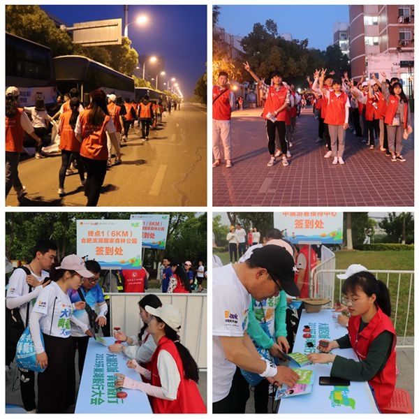 本次毅行大会,我校精心挑选500名优秀志愿者全程参与。11日凌晨四点半集合完毕后,由校团委全体成员和各学院团总支书记带队,在起点、沿途12个站点和3个终点为1.5万名毅行者提供医疗维护、物资保障、奖牌发放、秩序维持、交通引导等优质志愿服务,全力保障毅行大会的顺利进行。