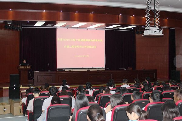 5月25日-26日,2019年度二级建造师执业资格考试在我校顺利进行。我校作为合肥市主要考点之一,共计3个场次,每场次150个考场,4500人参加考试。