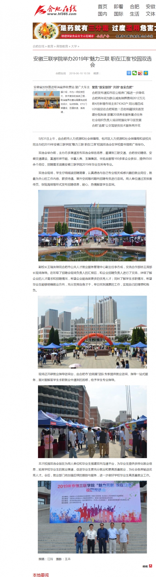 合肥在线:安徽三联学院举办2019年“魅力三联 职在江淮”校园双选会