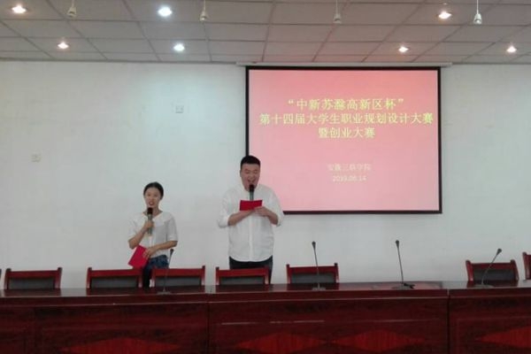 为进一步强化大学生职业规划意识和创业意识,提高大学生的实践能力和综合素质,着力培养大学生的社会责任感和创新精神,6月14日 “中新苏滁高新区杯”第十四届安徽省大学生职业规划设计大赛暨大学生创业大赛安徽三联学院校园总决赛在学校B01报告厅举办,大赛吸引了200余名学生到现场观看。