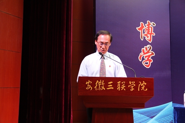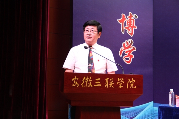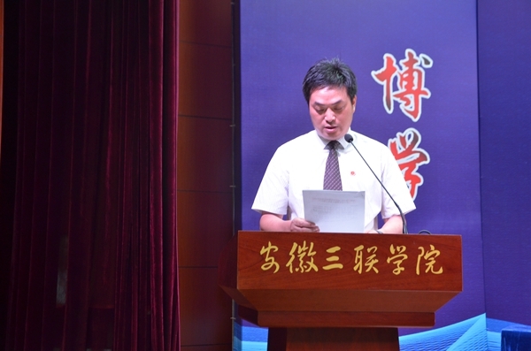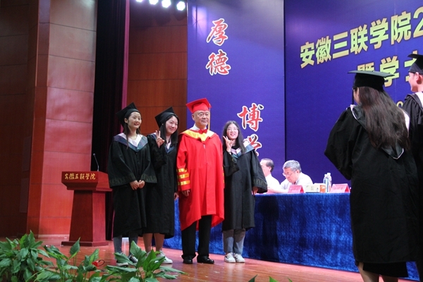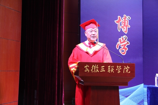 在热烈的掌声中校长金会庆教授为毕业典礼作重要致辞。他首先代表学校,向各位毕业生表示最热烈的祝贺,向辛勤培育、一路陪伴进步成长的老师、家长们表示最衷心的感谢! 他感言道安徽三联学院办学二十余年春华秋实、励精图治,升本十余年初心不忘、风雨兼程。大学四年,我们共同见证了2019届3600余名本科生的“芳华绽放”。所有这些美好的回忆都是宝贵精神财富,都已镌刻在三联的历史丰碑上。