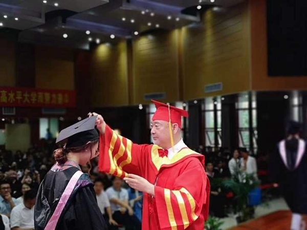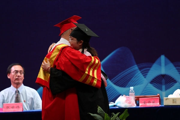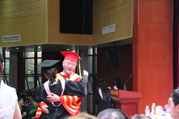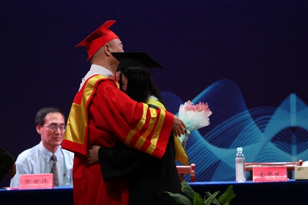 讲话结束后,金会庆校长移步台前为3600余名本科毕业生一 一拨正流苏,同学们纷纷与校长或握手,或拥抱,或合影,以表达对金校长的敬仰和毕业的欣喜之情。金校长的身体力行,更是生动诠释了“以生为本”的深刻要义和执着坚持。