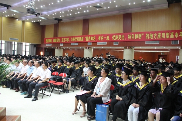 毕业典礼在雄壮的国歌和校歌声中拉开帷幕。