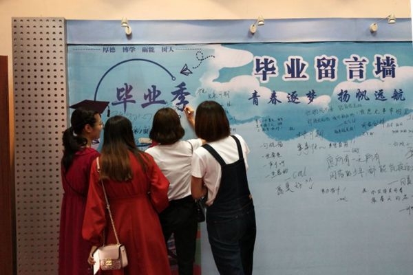 又一个收获的季节硕果飘香,又一个浓情的六月祝福飞扬。为营造温馨和谐的毕业离校氛围,让毕业生在校园留下最后一抹亮丽的色彩,6月19日-21日,学生处组织开展了2019届毕业生留言特色活动。