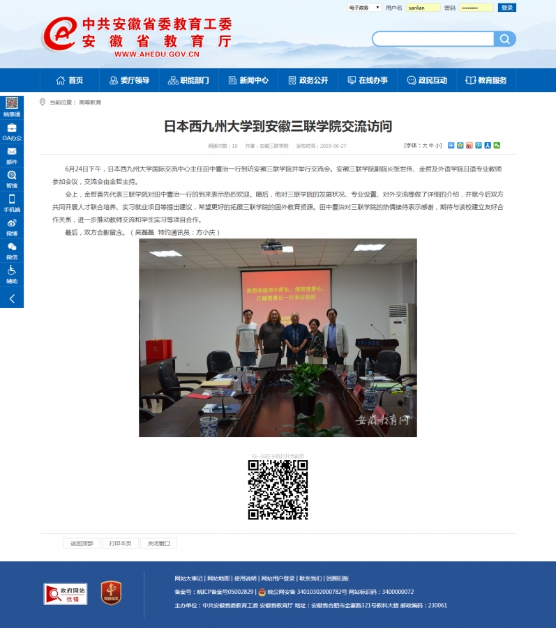 安徽教育网:日本西九州大学到安徽三联学院交流访问