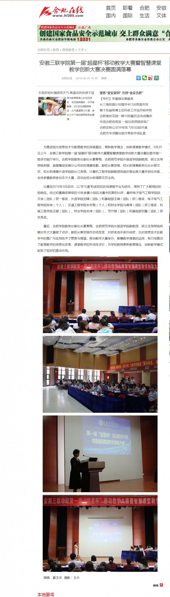 合肥在线:安徽三联学院第一届“超星杯”移动教学大赛暨智慧课堂教学创新大赛决赛圆满落幕